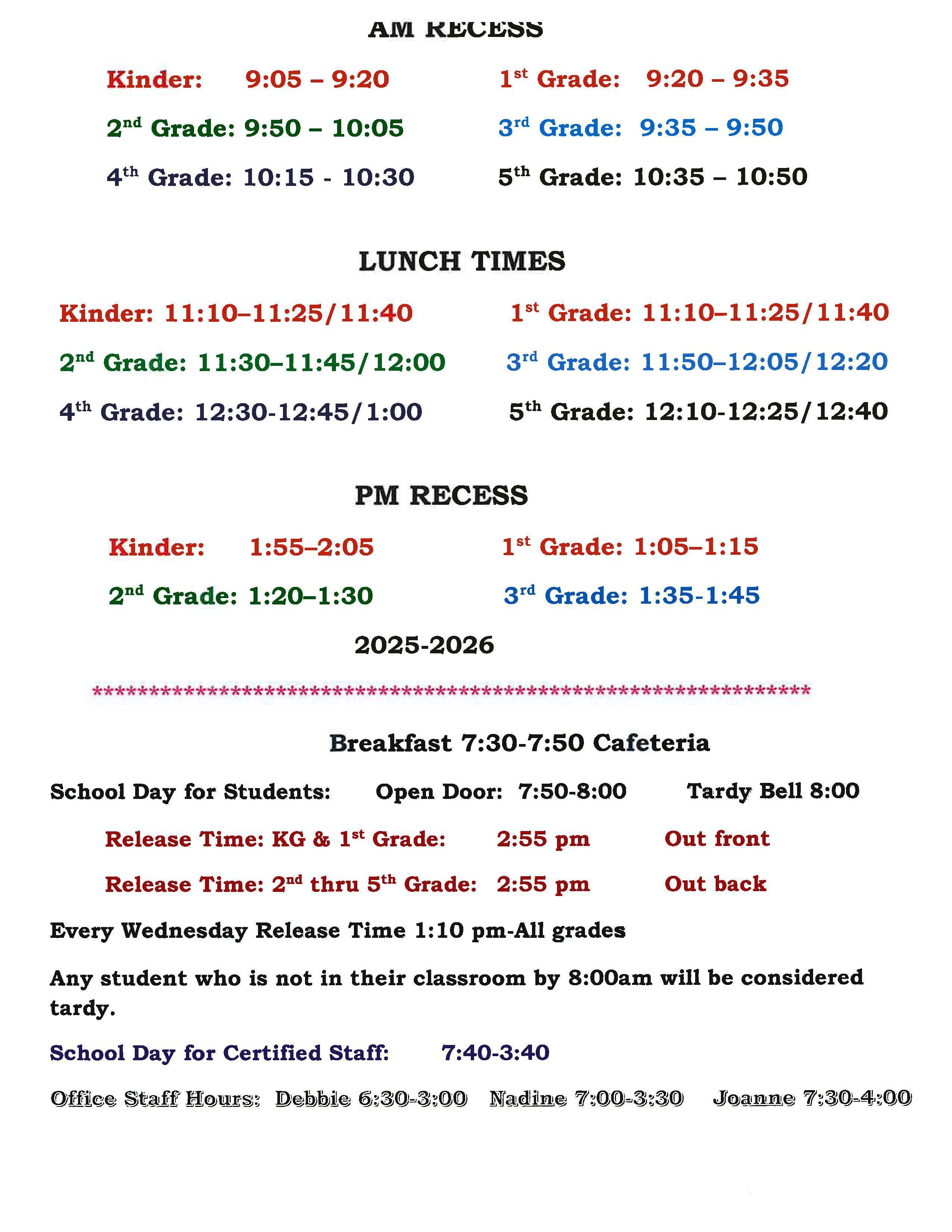 2025 2026 Kalmiopsis Elementary Daily Schedule